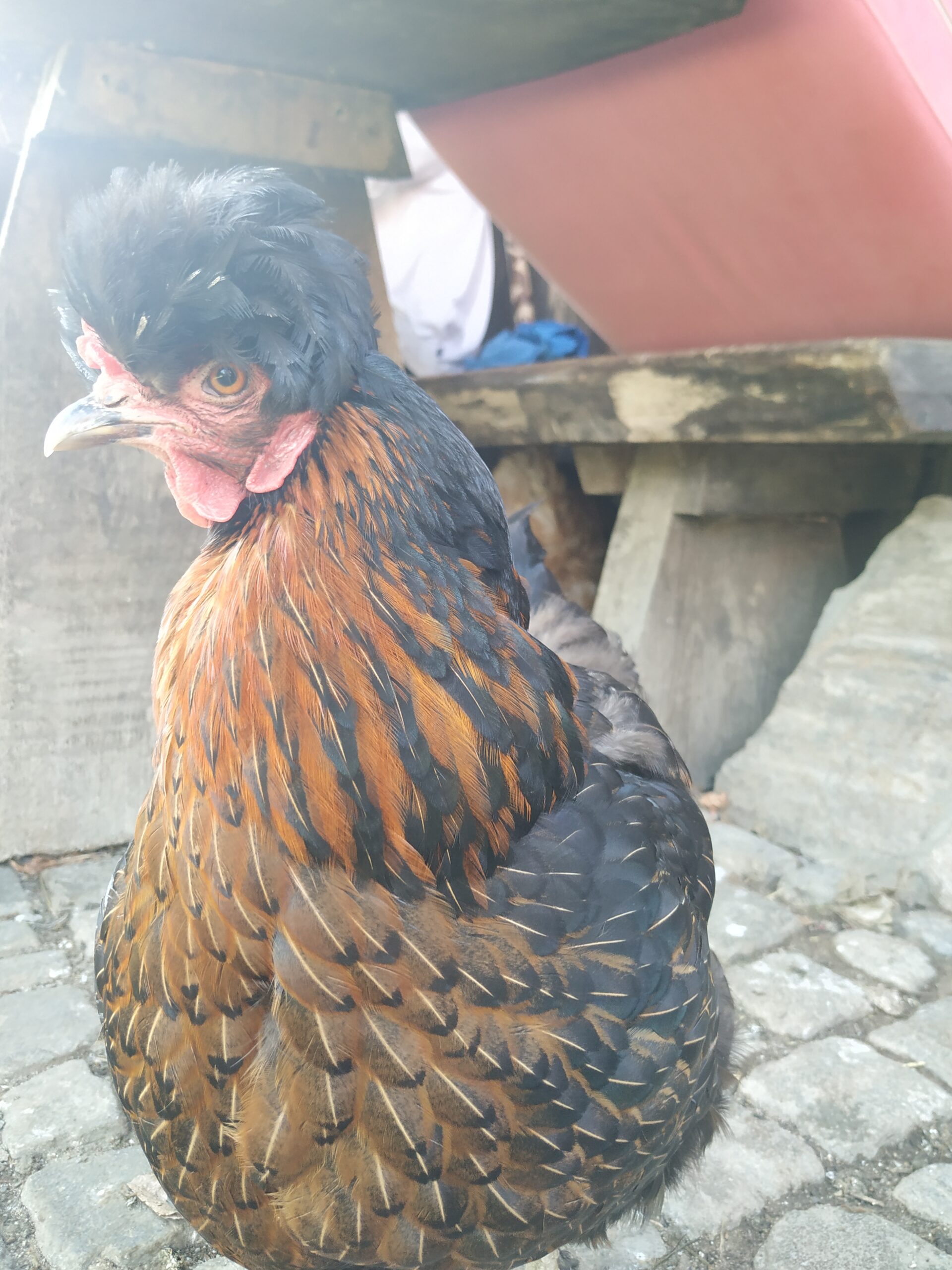 Čopka je bila skupaj z Zlatkotom, in še tremi kozami rešena z “kmetije” z rešenimi živalmi. Tam je bila tako kot druge živali prepuščena sama sebi. Veliko srečo je imela, da je ušla usodi ostale perutnine in malih živali tam. Skrila se je dovolj dobro, da je divje živali niso našle in pojedle, a ne dovolj dobro, da je ne bi našli mi in ji ponudili boljšo, bolj varno življenje.
