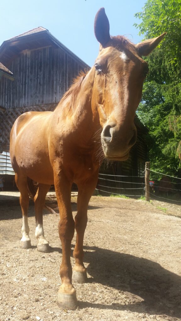 Ob rojstvu je bi najmanjši in najbolj šibek. Potreboval je dodatno hranjenje s človeškim mlekom. Kmalu si je opomogel in izboril dober prostor pri maminih seskih. A vedno je ostal nekoliko manjši, umirjen, previden. Če mu kaj ni znano, najprej opazuje iz varne razdalje in čaka, kaj drugi pujsi naredijo. Zadovoljen je,